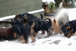 Wir haben uns prächtig zu typischen Silkys entwickelt. Mit Schnee und Kälte haben wir keine Probleme.